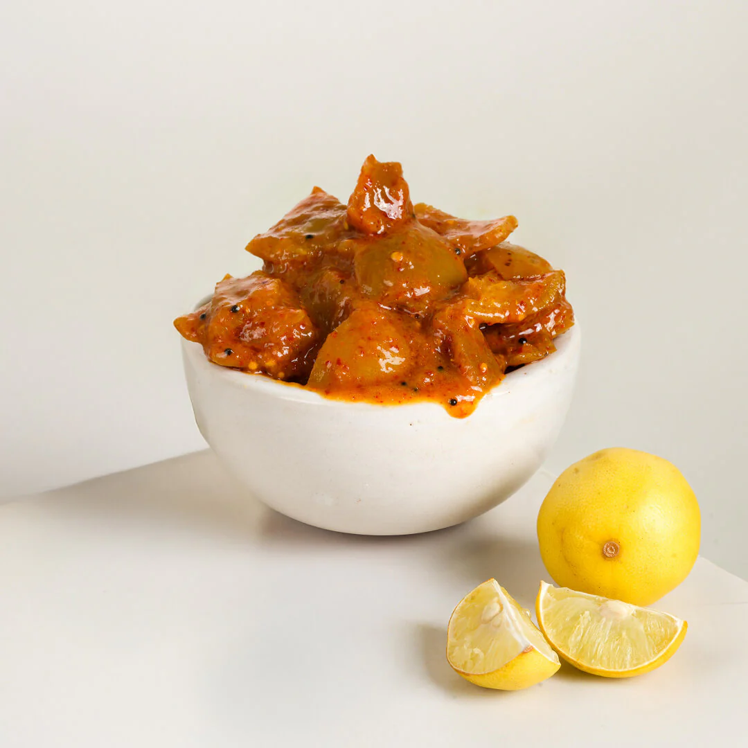 This pickle is usually homemade and preserved naturally using salt and oil, without artificial preservatives. Lemon pickle is valued for its long shelf life, refreshing taste, and traditional importance in everyday Indian cuisine.